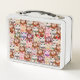 This is a standard metal lunchbox that appears to work just fine. We designed this box ourselves with an uploaded photo and custom text on the front and back. It looks absolutely beautiful except the front of the lunchbox is not centered like it shows in the photo. The print borders don't align with the inset flat part of the box where the preview photo online showed it perfectly centered in there. The back looks nice and centered though.