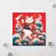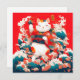 Behind the Maneki-Neko, a mesmerising wave of tranquil blue-green sweeps across the canvas, embodying the essence of Japanese artistry. The wave, reminiscent of traditional ukiyo-e prints, provides a dynamic contrast to the vivid red hues, creating a harmonious blend of old and new.