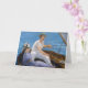 Manet Boating greeting card. Oil on canvas from 1874. Manet painted several different boat paintings during his career, Boating is perhaps the most personal and vibrant. Boating depicts a young couple in a sale boat. The young man with his hand on the rudder wears a simple white shirt, straw hat, and moustache, while the young woman leans down in the boat in a fancy blue and white dress with an elegant feathered hat. The water through which they sail is blue and calm. A beautiful gift for fans of Manet, sailing, early impressionism, and famous boat paintings.