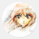 Manga Anime Girl sketch big eyes kawaii cute Classic Round Sticker