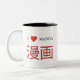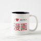This "I love manga" or "I Heart manga" design has a black font and a red heart. It also shows the word "manga" in Japanese Kanji red font.