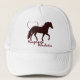 Our Mangalarga Marchador Hearts design on this hat features the silhouette of a Mangalarga Marchador gaited horse. The entire design is done in a deep red. The horse design consists of the horse silhouette, the words Mangalarga Marchador, and a lineart double heart. Wear this hat to show off your passion for this great horse.