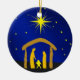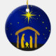 A lovely drawing of a manger scene with a dark blue background. This beautiful ornament is perfect as a gift for friends and family, or buy one for yourself. The image is CUSTOMIZABLE.
