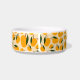 This is a heavy, durable bowl decorated with Tibbies of many colors, the perfect size for hungry/thirsty Tibs. The design is interesting and printing clear.