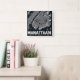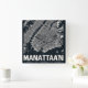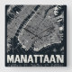 The stylised black and white map illustrations of the Manhattan area in New York City.