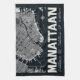 The stylised black and white map illustrations of the Manhattan area in New York City.
