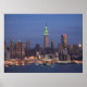 An earl evening view of the New York City Skyline as seen from across the Hudson River in New Jersey.