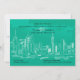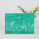 A delicate rendering of the New York City skyline in shades of teal. Featured as a wedding rehearsal dinner invitation, it is well-suited for a save the date announcement, a night on the town invitation and more.