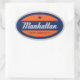 Oval signage design featuring the neighbourhoods of New York City. Official orange and blue colours of NYC. New York City borough of Manhattan.