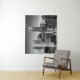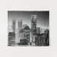 Tapestry in a semi abstract illustration of mid-town Manhattan in black and white, illuminated with city lights, under a starry midnight sky