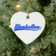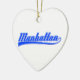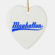 Manhattan, New York City, written with a swash (tail). Fonts in white and blue. Original text design.