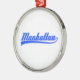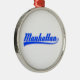 Manhattan, New York City, written with a swash (tail). Fonts in white and blue. Original text design.