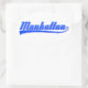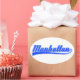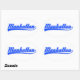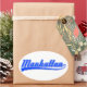 Manhattan, New York City, written with a swash (tail). Fonts in white and blue. Original text design.