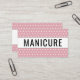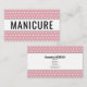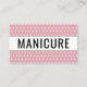 A simple & professional business card features a pink background with white polka dots. Perfect for manicure, hairdresser or beauty salon.