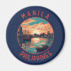 Manila retro vector travel design. Manila, the capital of the Philippines, is a densely populated bayside city on the island of Luzon, which mixes Spanish colonial architecture with modern skyscrapers.