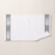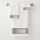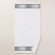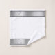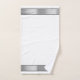 This industrial manly bathroom towel design features silver chrome metallic-looking borders with black accents on crisp white backgrounds. Great gift idea for a special man in your life.