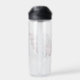 The bottle looks even better in real life. The ice cubes I put in lasts all day! I have my bottle with me all the time. It's summer and having something cold to drink feels amazing. With this bottle I always have something super cold. I have only tried the hot drink once and it lasted a long time as well. The color blue is a navy blue and the white printed on it is vibrant. It printed perfectly. I love my personalized smile water bottle.