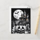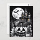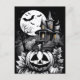 Unearth the essence of Halloween with this captivating postcard! A haunting mansion stands adorned by the eerie glow of a bright moon. Bats take flight across the night sky, while a carved pumpkin adds a touch of ghoulish charm. Share the thrill of the spooky season with this enchanting postcard.