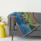 A quality printed throw has its advantages. This is a much finer weave throw than its loopier cousins, and though lighter, it is worth the investment for custom room accessorizing. The back is much prettier than the typical brown, and the fringe on the long sides very vivid, the selvage nicely done. Before photographing, I washed the throw in cold water, delicate, with a thicker woven throw the same size. On tumble dry low, this throw was dry in half the time as the other. This is a very practical quality if you use throws for furniture covers or to wrap up in frequently. The sleekness of the fabric makes it a great layer for accenting or protecting without the feeling of sitting on too much stuff. Perfect for napping or when you feel a light chill coming on. The color printing is beautiful and on this fabric, matched the design and color of my Photoshop image. This is an advantage for blending room fabrics and colors. The fringe on the short sides prints the colors from the design image and therefore varies from the side fringe. I streaked a white fractal line through the plaid pattern to give the illusion of weaving. This printed as crisp as an illusory thread, and put some white in the short side fringe, showing another advantage of print vs loomed- for artistic purposes, line lines, detail, and color integrity can be planned and preserved. My loomed throws have color limitations and more of a needlepoint texture. Print throws reproduce an exact image. The throw felt a little stiff straight out of the package, but this went away in the first delicate wash. Of course I searched the wash water for ink or bleeding and there was none.