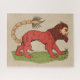 A scorpion-tailed Manticore with cinnabar-coloured pelt grimaces fiercely in this original illustration based mainly upon Ctesias's description of this man-eating hybrid beast.