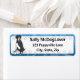 Fun Mantle Great Dane address labels have a cartoon of the giant dog breed sitting on the left. Background has paw prints, and border is swirly blue.