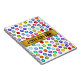 This notebook design features lots of circles/dots of various colours. It also features a custom name within a faux gold coloured area.