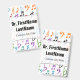 This badge design features a pattern involving various music notes and music notation symbols coloured a variety of colours. It also features a personalised name in black coloured text within a light coloured area. There is also a customisable message under the name that could show information such as a job title, or a profession, or a business/company name. [~Z0000176]
