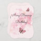 The Many Happy Blessings Butterfly Birthday Flat Card features a light pink background, with a pink floral design and butterflies, along with the text, “Many Blessings on Your Birthday!” On the back, the flat card features the scripture for James 1:17, along with a pink butterfly and a pink butterfly trail. The back also features the message reads, “Wishing you a Birthday filled with many blessings and lots of love!”