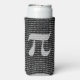 Celebrate March 14 with this seltzer can cooler, which features an oversized Pi symbol overlaid with many digits of this mathematical constant, rendered in a 60s OCR-style punch card font on a black background. Reverse shows identical design.