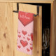 Destei's red hearts in different sizes on a blush pink background colour. There is also a personalizable text area on the big heart in the middle.