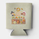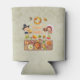 Can cooler with a Thanksgiving illustration - a pilgrim and native with many thanksgiving themed