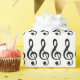 This wrapping paper design features many black treble clef musical symbols. It would be a fun wrap to use for gifts for a musician, singer, or composer.