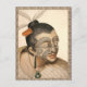 Maori Warrior vintage artwork about 1784. Head and shoulders portrait of a Māori man, his hair in a topknot with feathers and a bone comb, full facial moko, a greenstone earring, a tiki and a flax cloak. He has a small beard and a moustache. He is known as Rachel and Maygen. Cool gift for a friend with tribal tattoos.