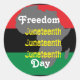 This Juneteenth Sticker featuring the Map of Africa over the Pan African Flag works best on round or Square Stickers. Juneteenth, also known as Freedom Day, Jubilee Day, Cel-Liberation Day or the Black Fourth of July, is an American holiday that commemorates June 19, 1865.