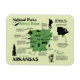 Artistic map of Arkansas, with all national parks marked, briefly described and illustrated.