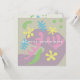 Card to congratulate birthday on abstract colorful forms of plants and text