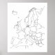 Map of Europe with blank outlines of countries in black and white to use for educational purposes, to keep track of places you travel, or for any other purpose. Write on to label countries with your own information.