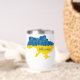 Map of Ukraine decorated with sunflowers and handwriting stylised typography in Ukrainian flag colours yellow and blue