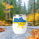 Map of Ukraine with sunflower and Ukrainian flag