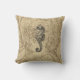 Map Sealife Black Seahorse Illustration Coastal Cushion