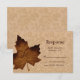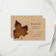 This is the coordinating RSVP for the Maple Leaf Wedding Invitation. This RSVP is accented with a large maple leaf, subtly monogrammed in the initials of both the bride and groom. It is shown on the basic paper; however I recommend the weight and texture of the linen paper.