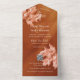 This autumnal wedding all-in-one invitation features subtle monochromatic maple leaves accenting a flowing light to dark earthy burnt orange gradient - by katz_d_zynes