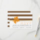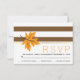 Maple leaves and brown, white stripes fall or autumn wedding RSVP reply card. The brown and white striped pattern and the orange maple leaves on the corners of a white frame with gold outline and your text adorn this elegant autumn wedding invite.