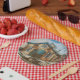 These paper plates feature a maple sugar shack at Parmelee Farm in Killingworth, Connecticut.