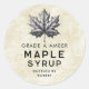 Editable homemade maple syrup canning label featuring a vintage style maple leaf illustration. Make your own canning labels for your favourite homemade recipes. Perfect for preserves, homemade gifts or as kitchen pantry organiser.