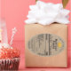 Personalise with your business name and location at the bottom. Kraft background with a yellow sugar maple leaf design. Text at top reads "100% pure maple syrup." NEW 2020 Maple Syrup Nutrition Facts Label. Customise with the number of servings per container for different sized bottles (see list).