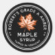 Editable homemade maple syrup canning label featuring a vintage style maple leaf illustration. Make your own canning labels for your favourite homemade recipes. Perfect for preserves, homemade gifts or as kitchen pantry organiser.