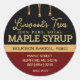 Maple Syrup drips catch your eye on a black and red background with syrup-coloured text. Change banner text from Barrel-Aged to Wood-fired or Hand-Tapped, Family Owned, "Established in 2008" etc.  Happy Sugaring!
