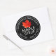 Realistic red sugar maple leaf with morphological details on black background. White chalkboard text. White line along border of label. This promotional label is great for reminding customers that maple syrup is a natural product that is "100% Pure - Made by Trees".