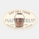 Customise with your business name, address, volume of syrup. Central image of a vintage wooden bucket used for collecting sap.